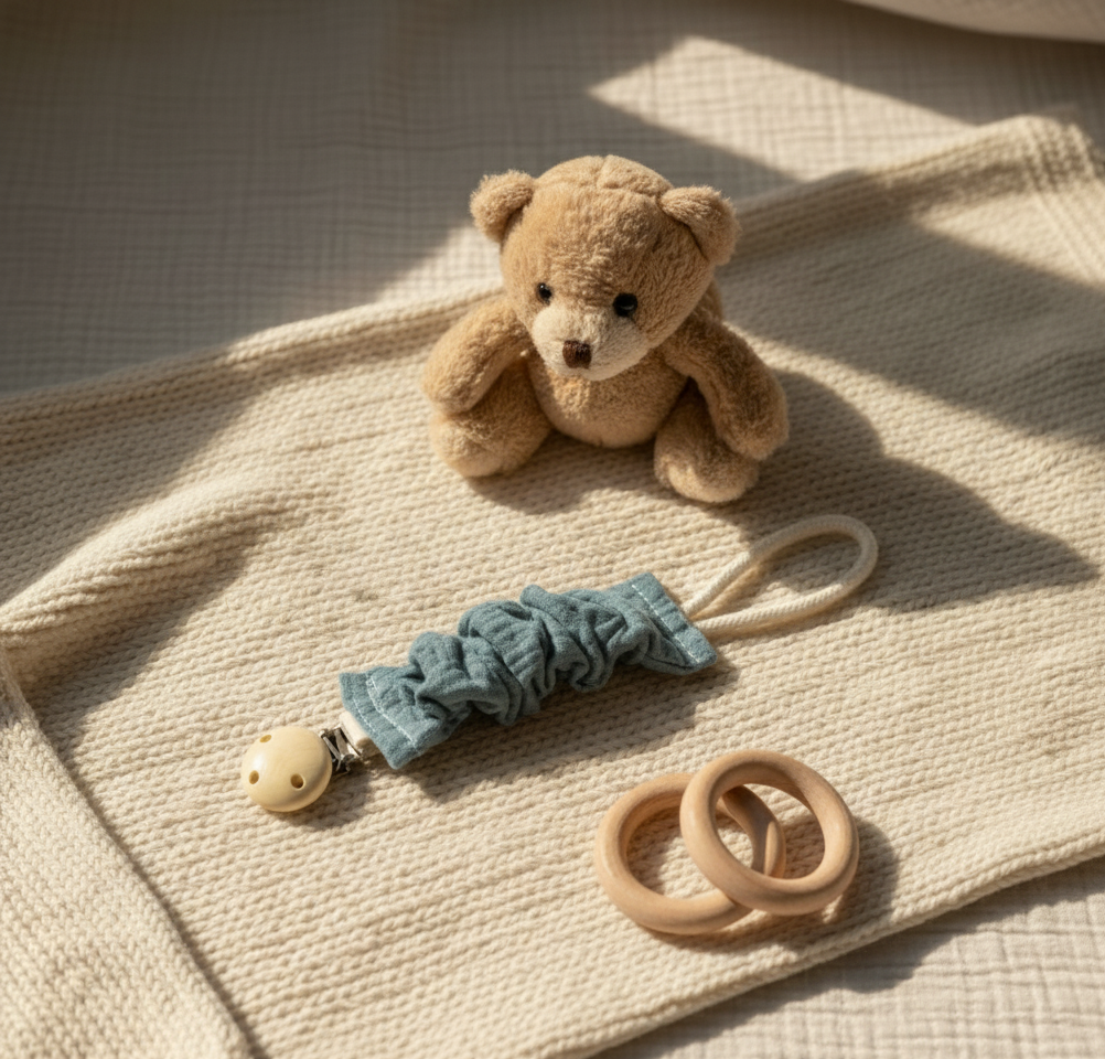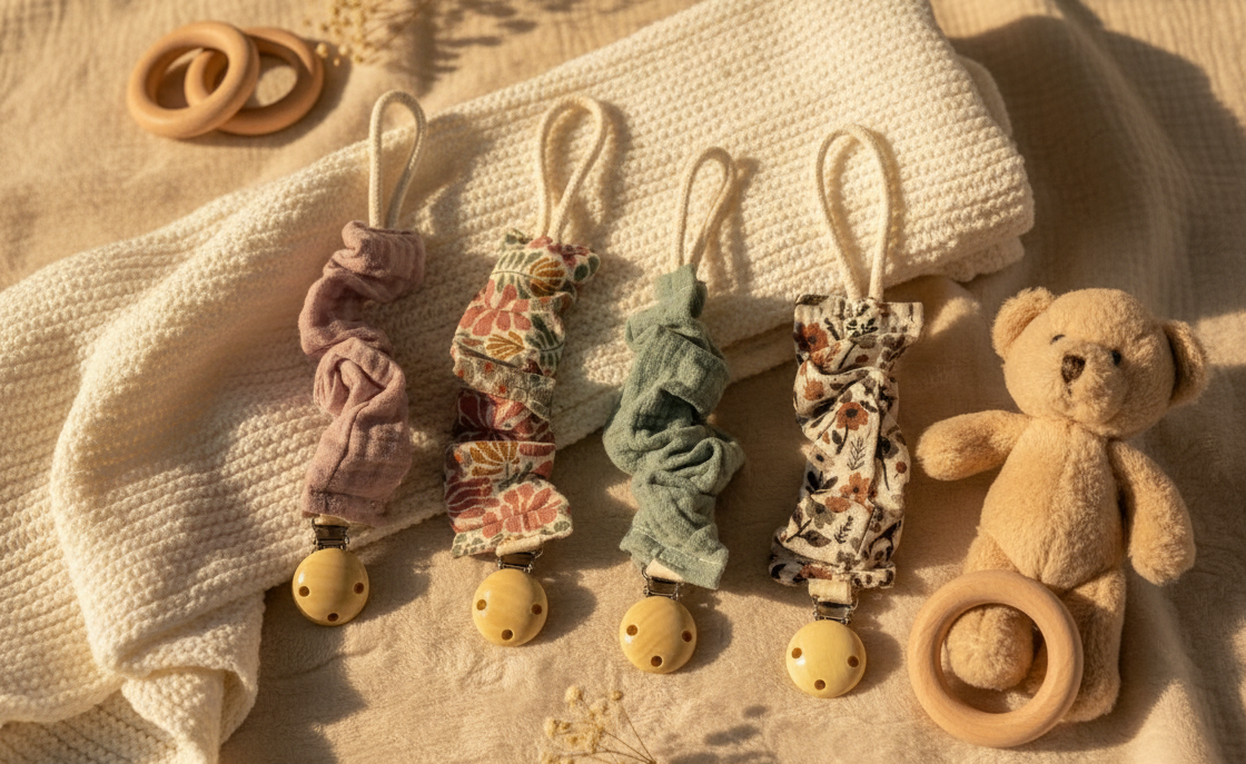L’attache-tétine Juste Inséparables allie douceur, sécurité et style.