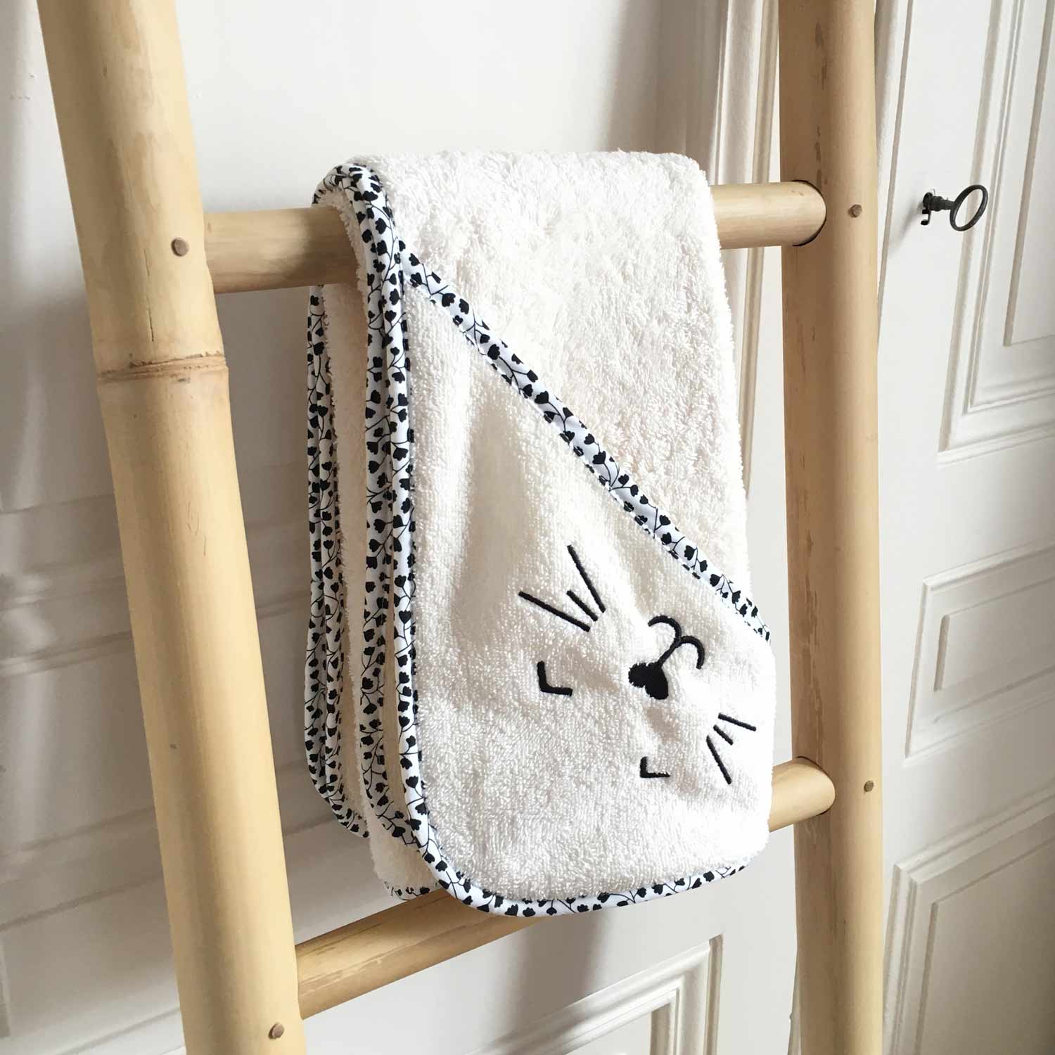 Disponible en quatre couleurs tendances et modernes, notre cape de toilette revêt une adorable broderie de chat sur la capuche.