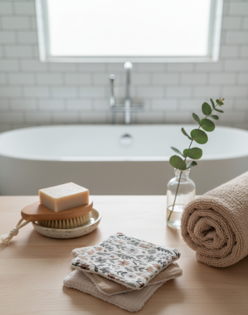 Découvrez notre lot de 3 lingettes lavables, un essentiel du quotidien alliant douceur, beauté et engagement, Made in France par Juste Inséparables.
